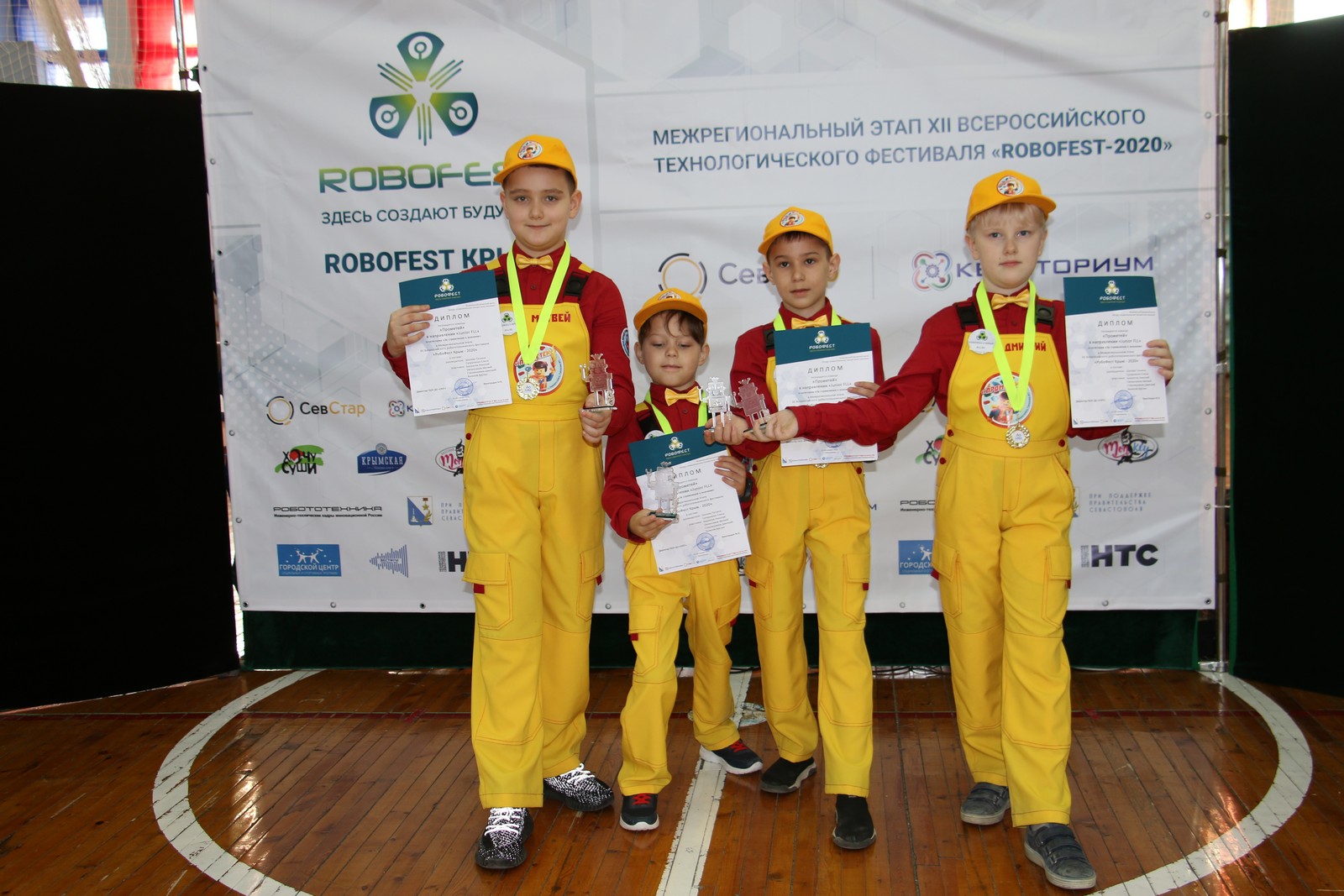 Поздравляем победителей Открытого межрегионального робототехнического фестиваля «РобоФест Крым - 2020», который прошёл 26 января в Севастополе. Команда гимназии №1 (Башкатов Николай - 1 кл., Овчинников Матвей, Стеклянников Дмитрий, Халилов Арслан - 3 кл.) представила проект в соревновательном направлении ? FIRST LEGO LEAGUE JUNIOR! Результат - первый рейтинг по баллам среди команд этого направления! Тренеры команды учителя начальных классов Татьяна Владиславовна Шилова и Елена Викторовна Супруненко!!! Гимназисты показали высокий уровень организации, презентации и коммуникативности на чемпионате! Проект посетили многие участники, гости и тренеры! В течение всего соревновательного дня было получено много положительных отзывов!!!