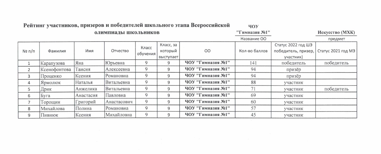 Участникам были предложены задания на знание архитектуры, скульптуры, музыки, литературы, театра. Ребята анализировали картины, работали с таблицами. Итоги школьного тура определили победителей и призёров, которым предстоит участвовать в муниципальном этапе олимпиады. Пожелаем гимназистам успехов!