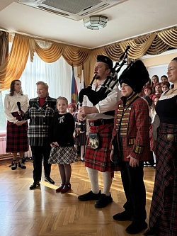 Главное действие проходило в актовом зале. Под звуки волынки в зал вошла директор гимназии...